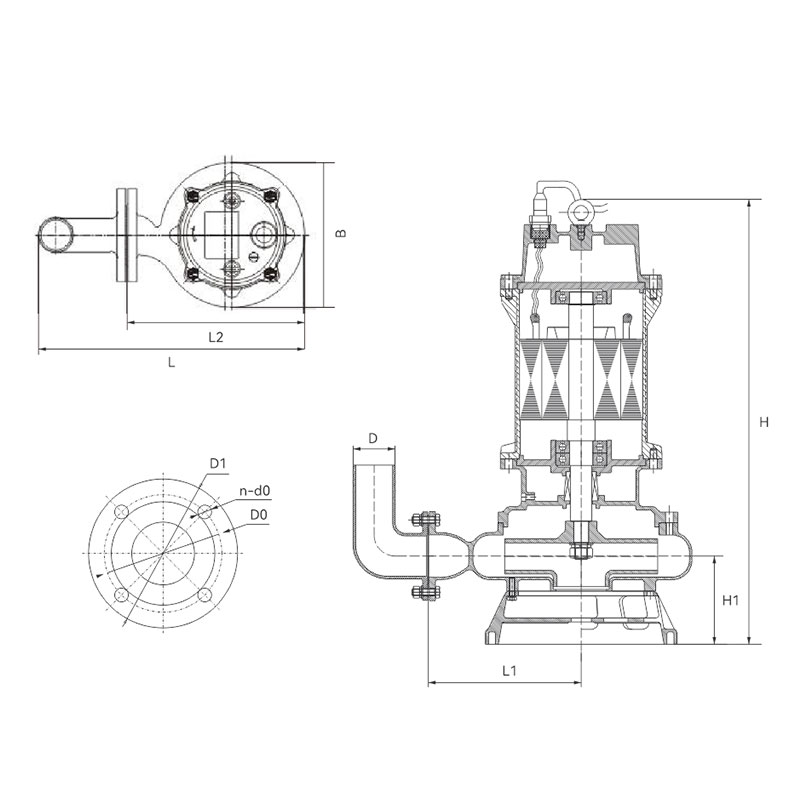 3 200WQ250-7-11S 250 7 11 380 200 1450 / 323 558 470 1037 222 Φ200 Φ280 4-Φ18.5 Φ320